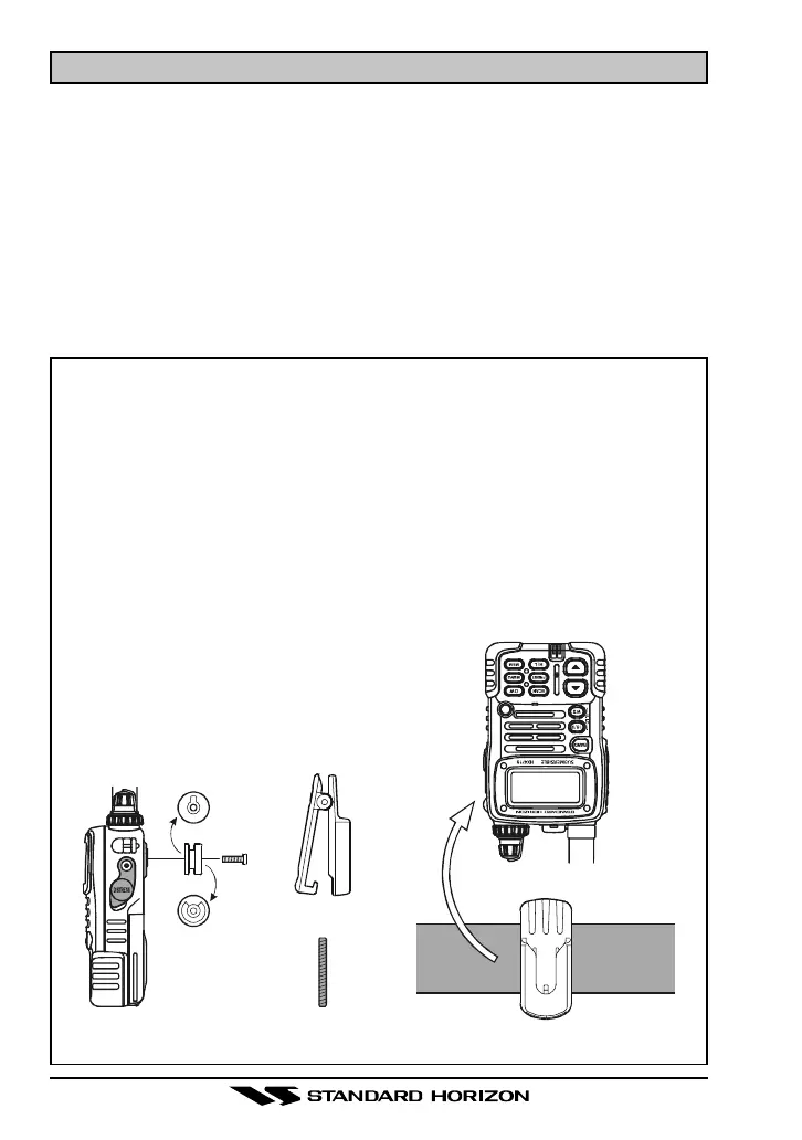 1. Install the belt clip on the transceiver according to the description in the
