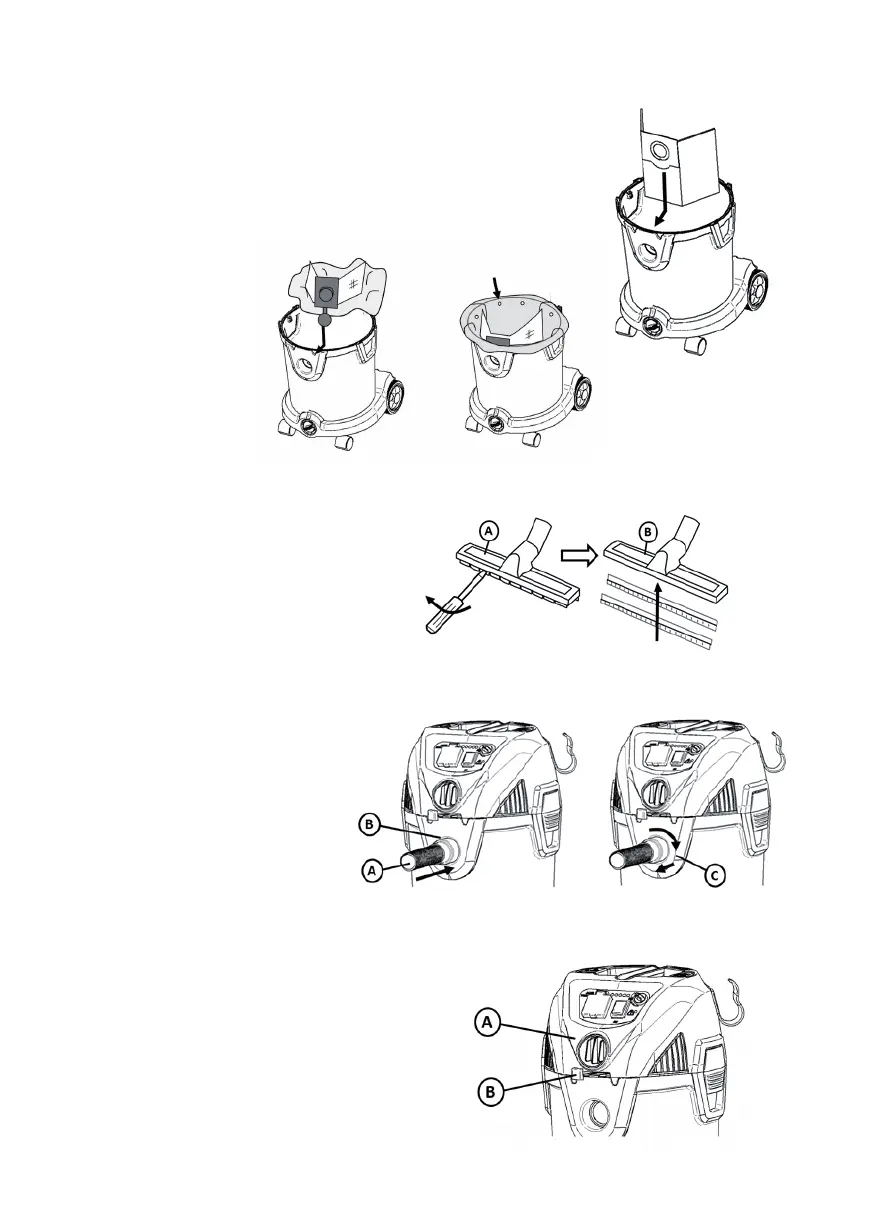 To insert the dust bag take off the head (see also gure 3). Insert the dustbag like shown on