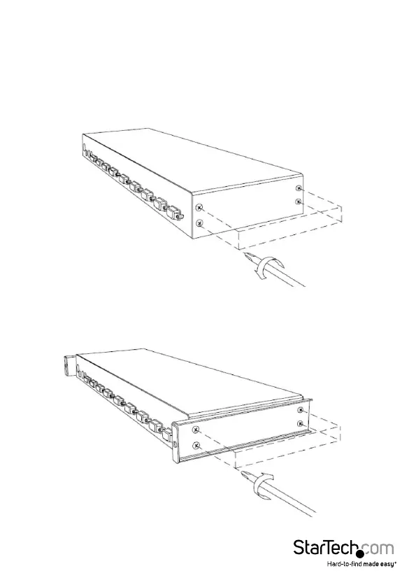 2. Attach the mounting brackets to both sides of the KVM console, using the screws