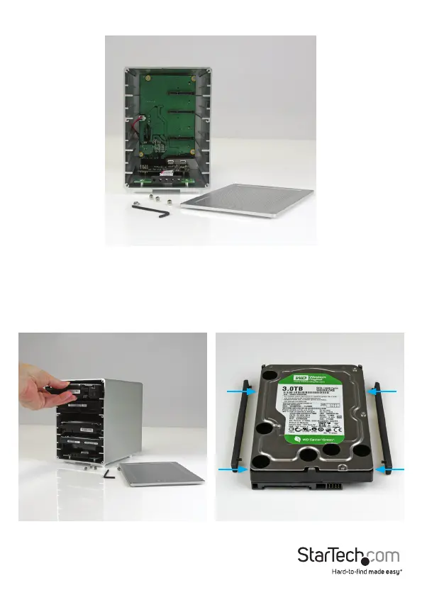 drive mounting holes. Then with your hard drive labels facing upward, slide each of your