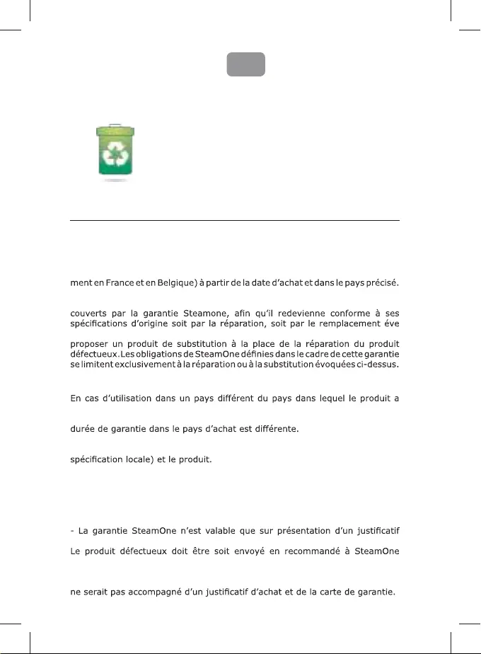 Ce produit est garanti par SteamOne (informations contact page 5) contre