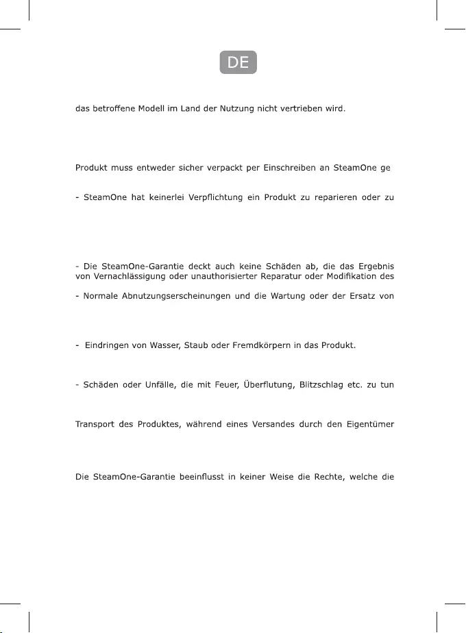 - Die SteamOne-Garantie beinhaltet nicht die folgenden Fälle: