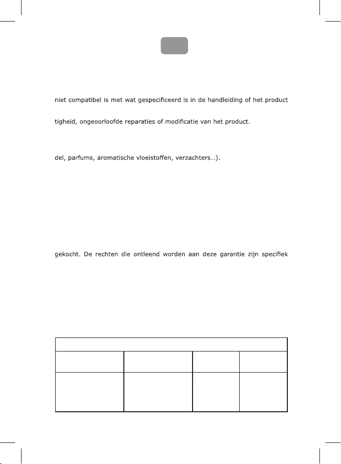 -De garantie is niet geldig in geval van problemen die verband houden met