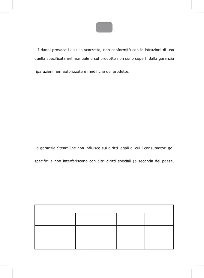 - Inoltre, la garanzia SteamOne non copre danni risultanti da negligenza o da