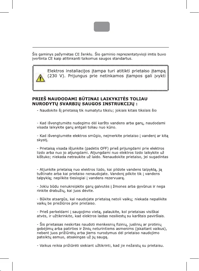 prietaiso nenaudokite.