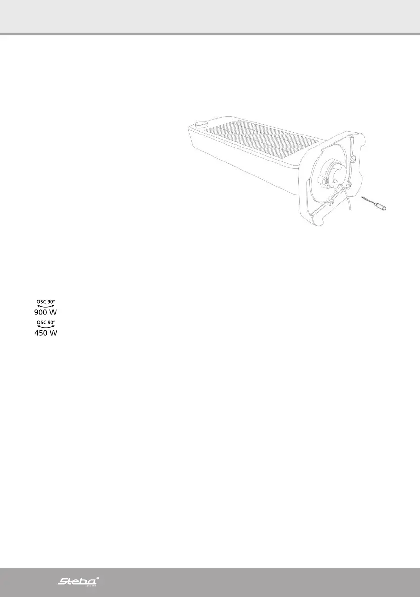 450 W mit Oszillation (nur ein Heizstab leuchtet)