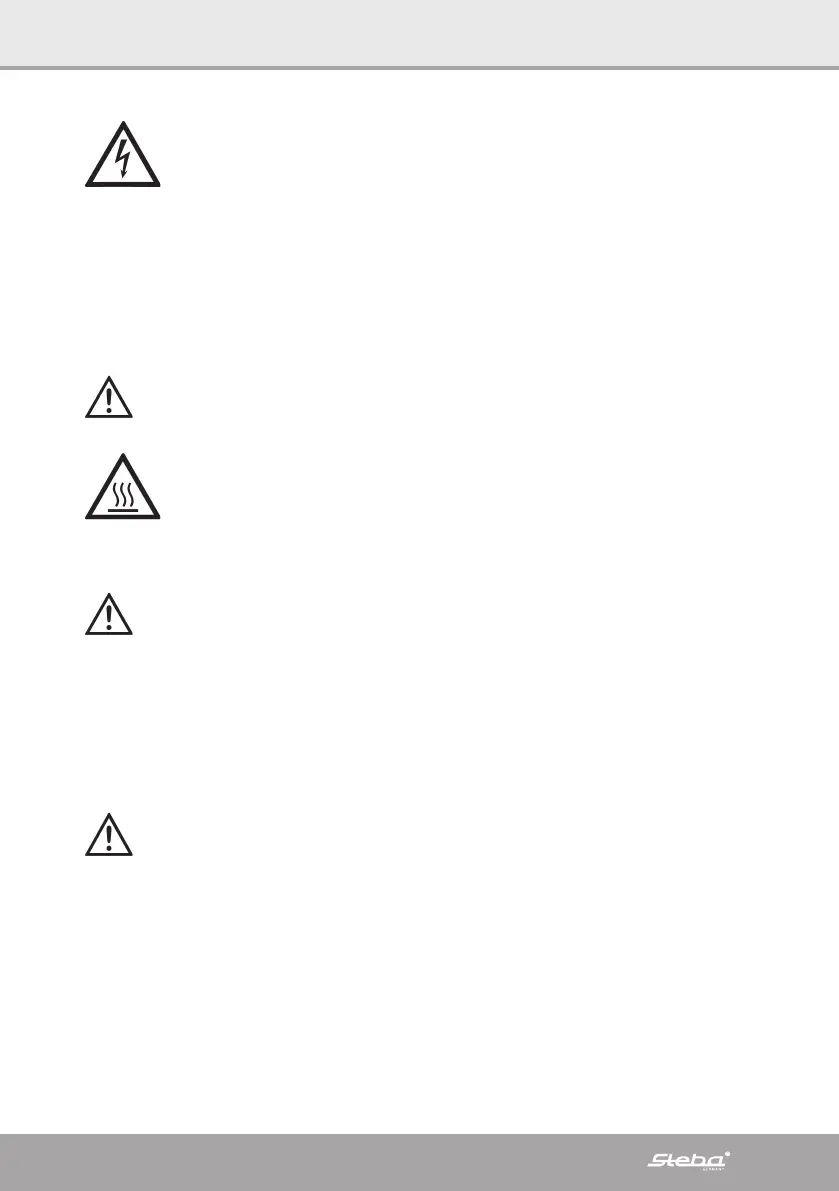 ∙ Never place empty pots, cutlery or other metallic objects onto
