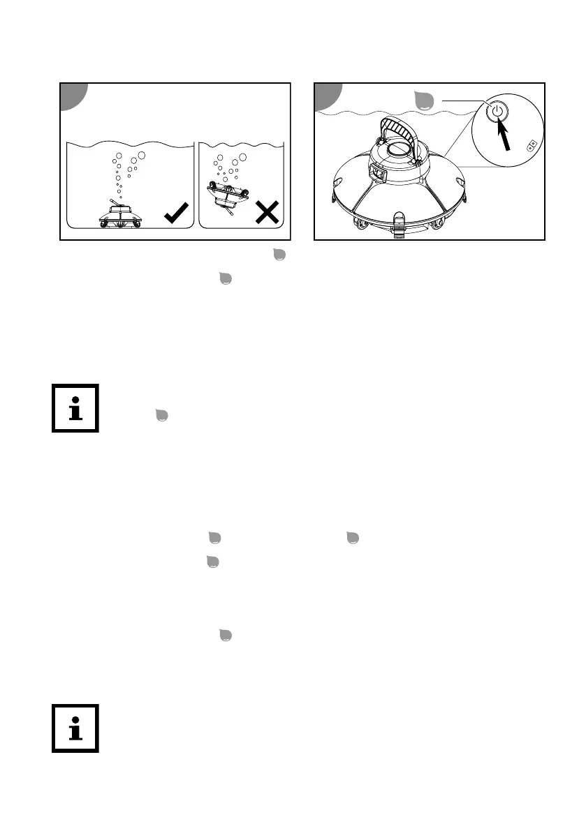 Colocación del dispositivo en la piscina e inicio de la limpieza