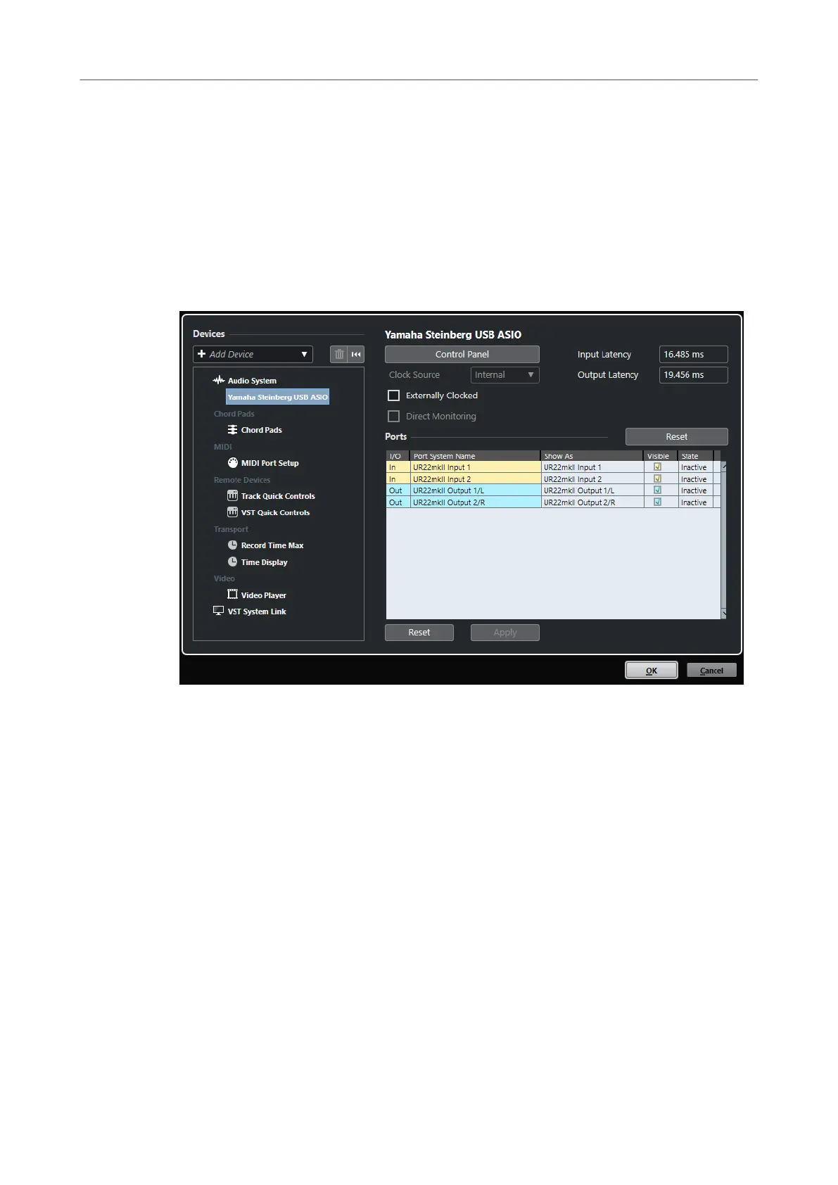 Activate this option to monitor via your audio hardware and to control it from Cubase.