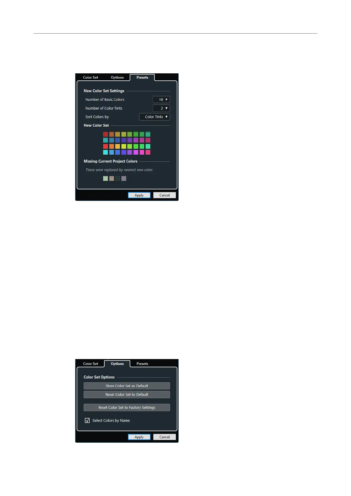 Allows you to sort the colors of the color set by their basic color or by their color tint.