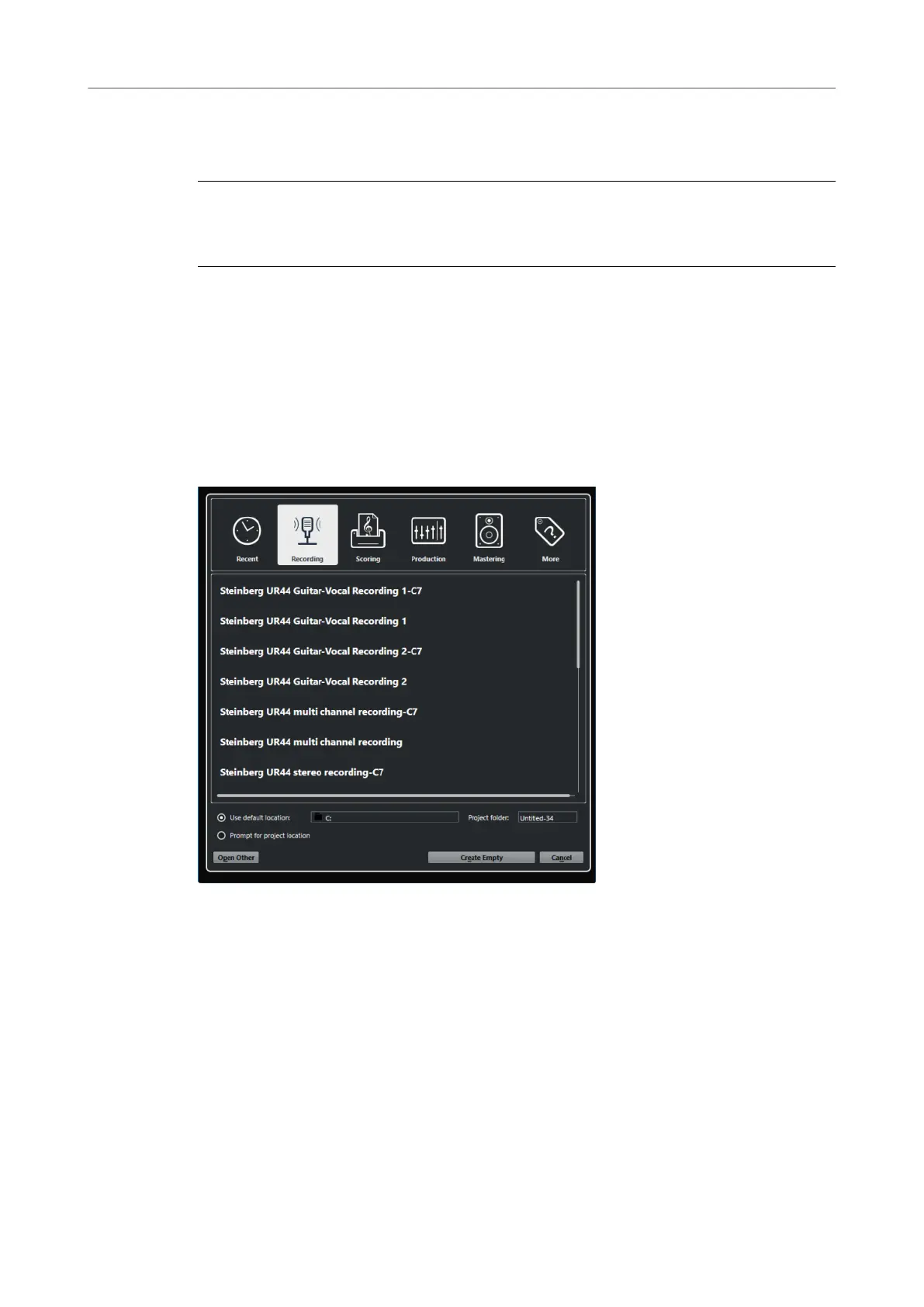Cubase starts without opening a project and opens the Project Assistant dialog when you create