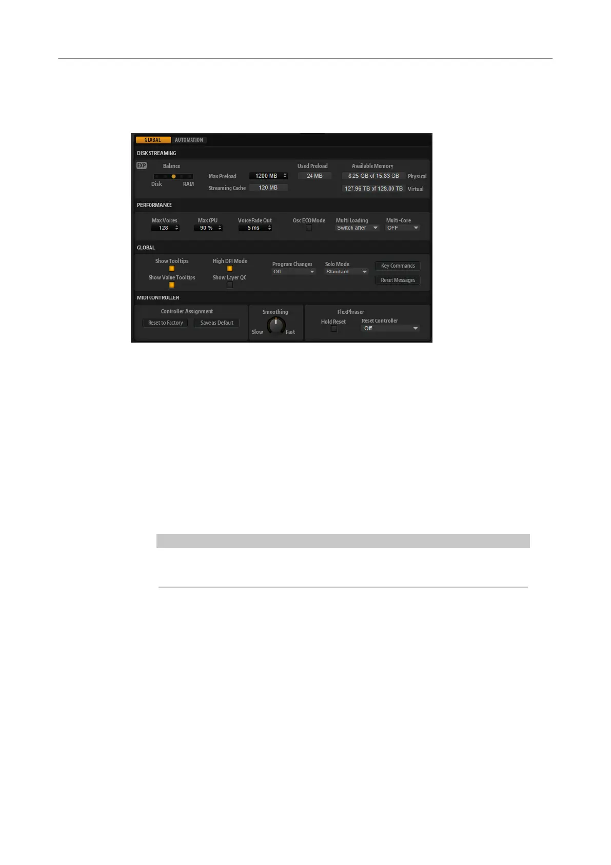 specify how much RAM should be used and how much HALion Sonic should rely on accessing the