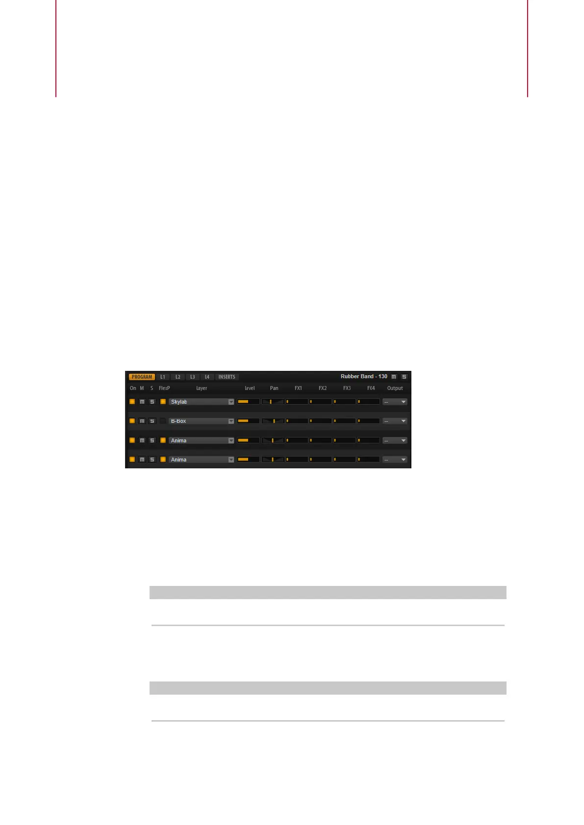 A program contains up to four layers that can all be mapped to different velocity and key ranges.