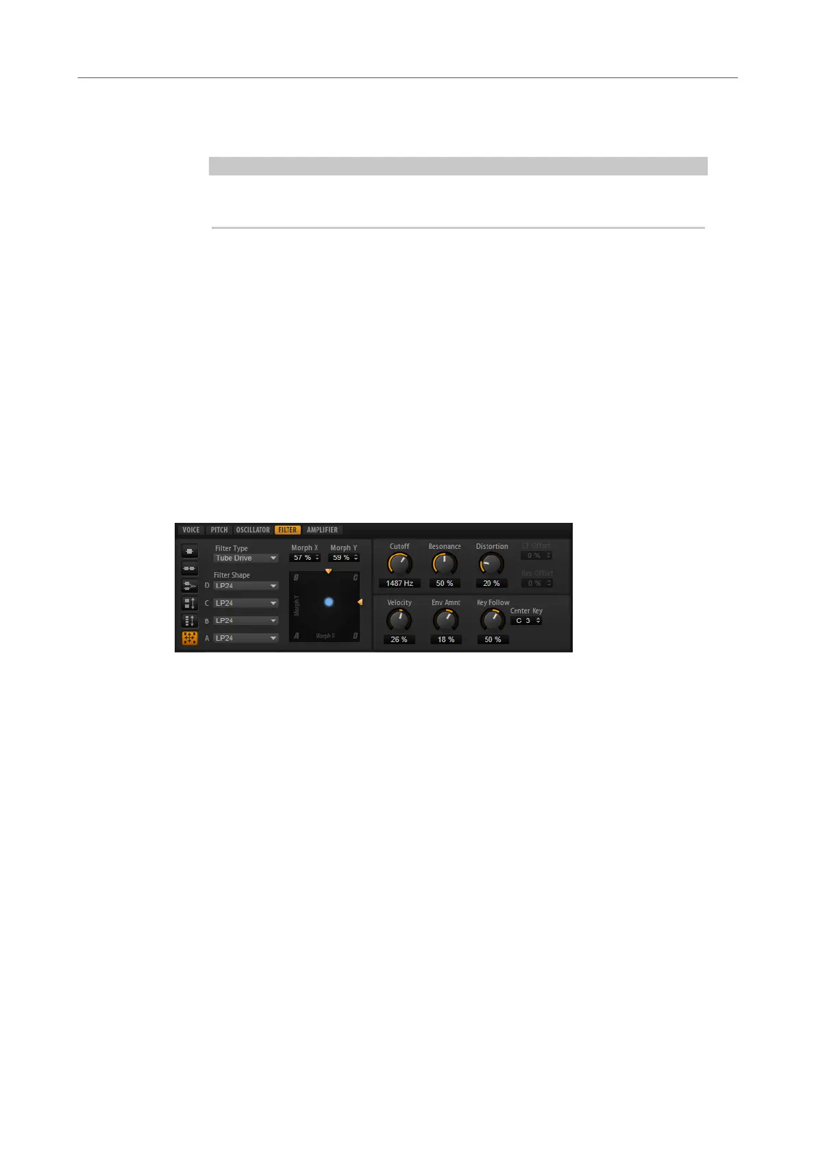 ● Morph XY morphs freely between the lter shapes A, B, C, and D.