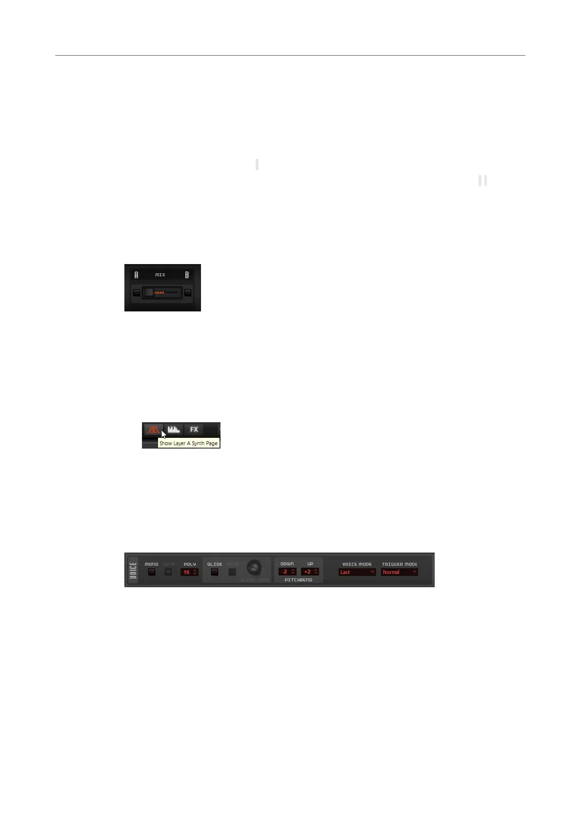 ● Use the Layer A/B Mix fader to adjust the relative levels of the layers in the nal mix.
