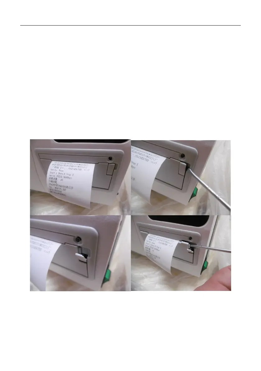 stikkontakt. Læg en papirrulle i printeren (for at åbne den, brug et fladt, stumpt