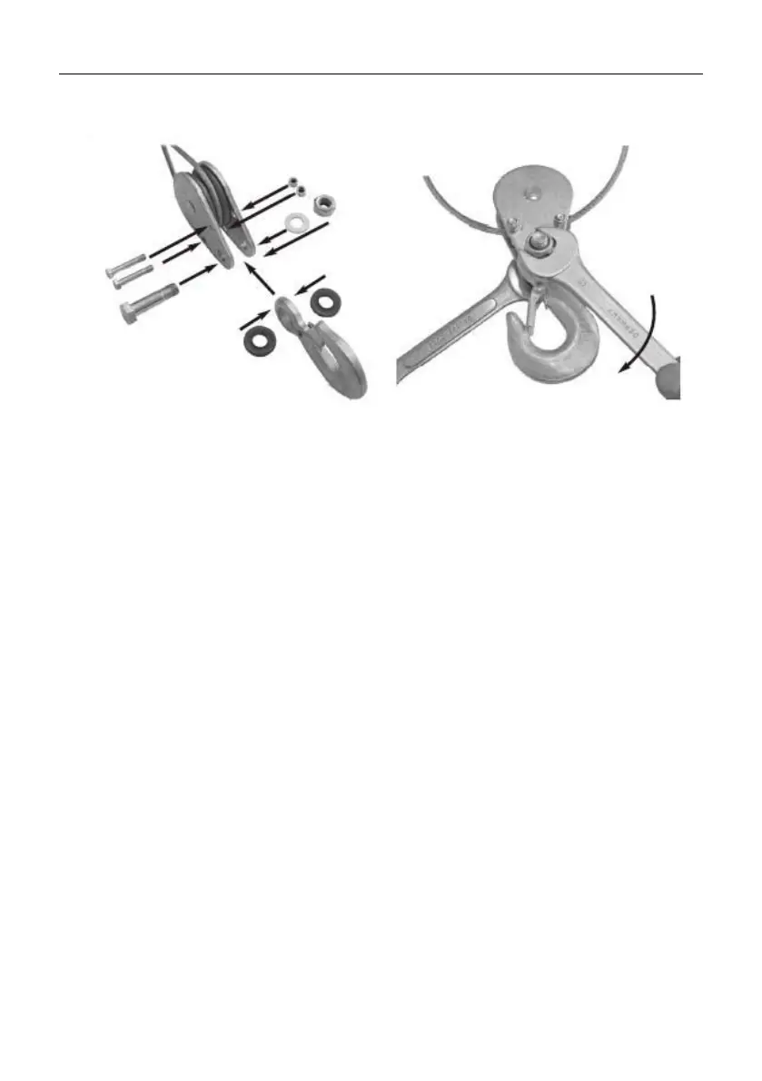 2) Una volta montato, il gancio della puleggia deve pendere verticalmente, mentre il