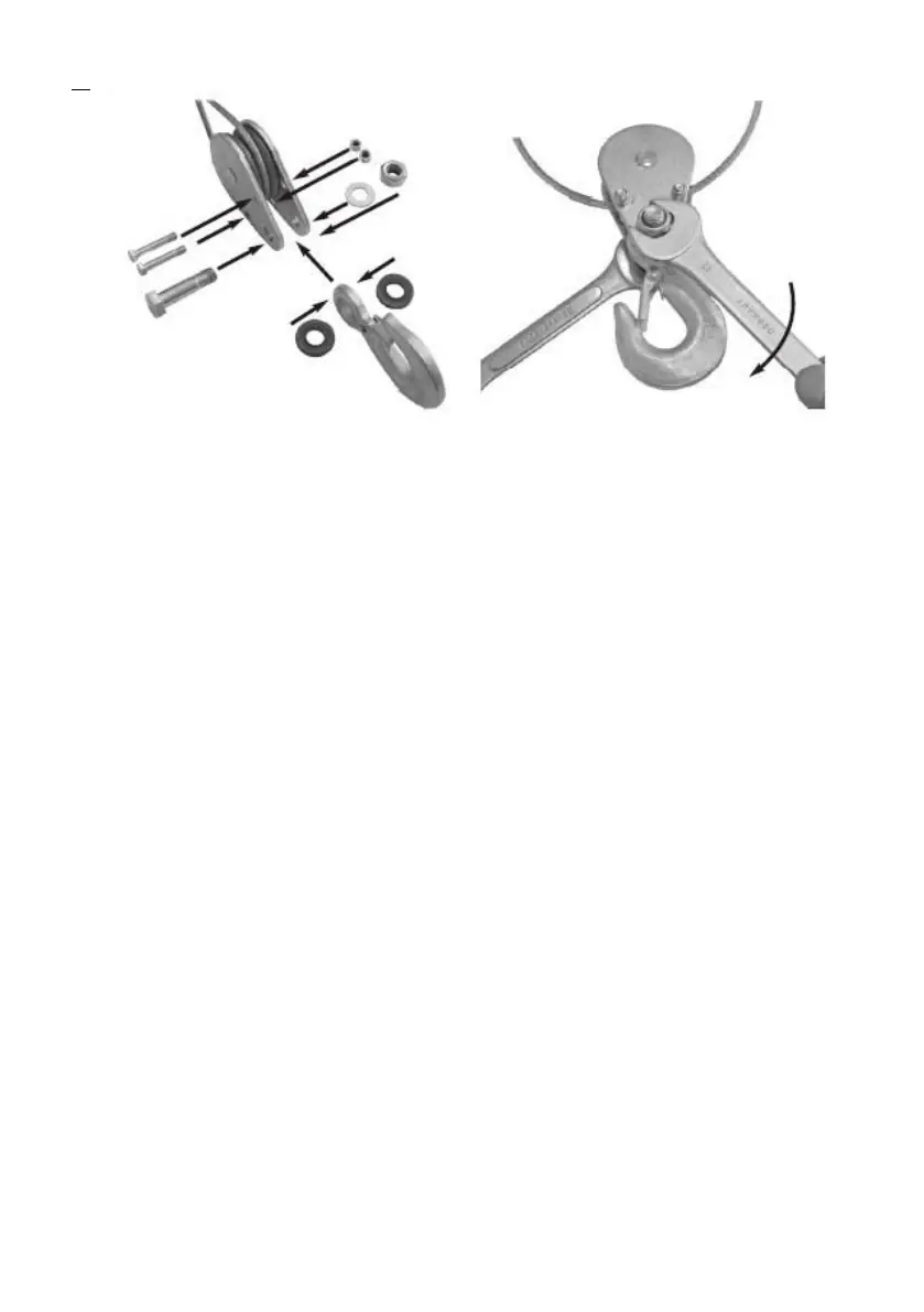 2) After mounting, the hook of the pulley should hang vertically and the hook of the