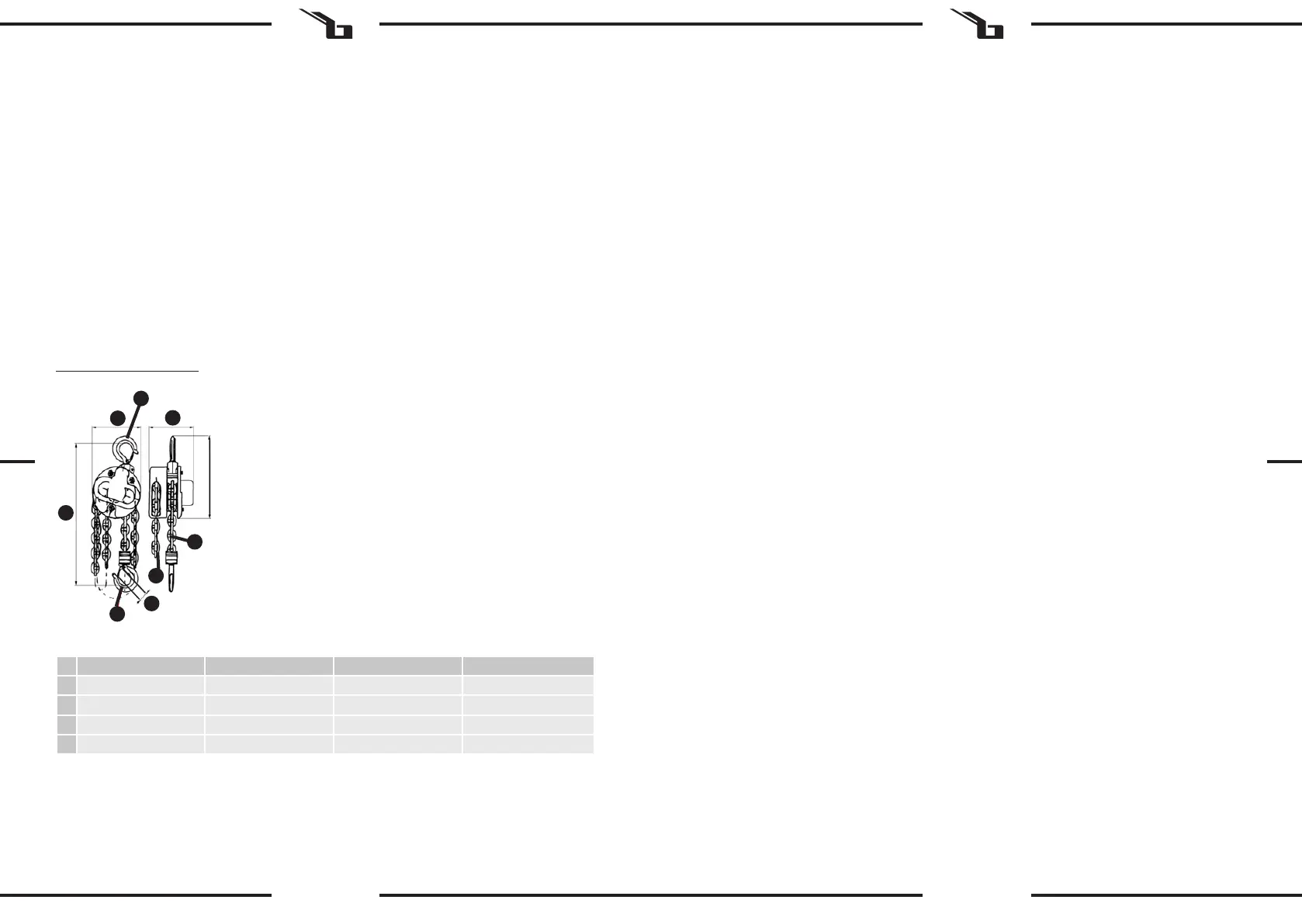 Kroken skal plasseres rett over lasten slik at kjettingen ikke er strukket. For å løfte / senke lasten, trekk i håndkjettingen for