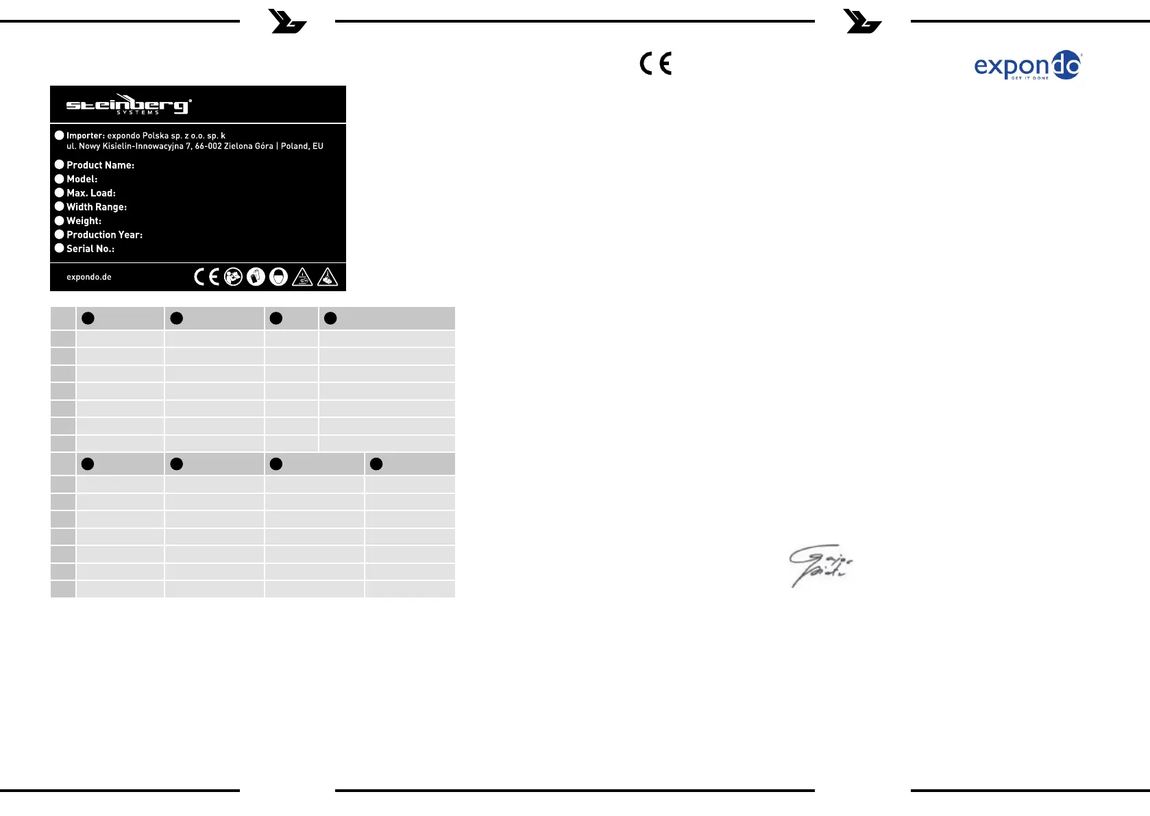 documentation technique se trouve au sièe de l’entreprise EXPONDO Polska sp. z o.o. sp. k. et peut êre mise àdisposition