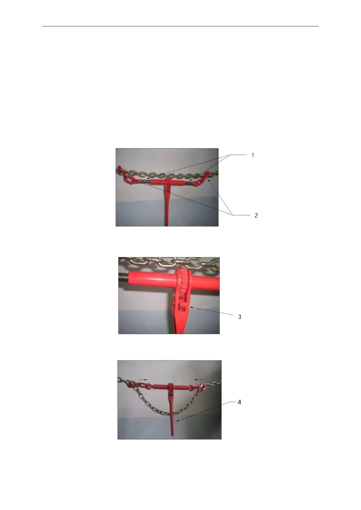 4. Tournez la poignée pour tordre la tige épineuse dans le cylindre à cliquet et serrer la chaîne.
