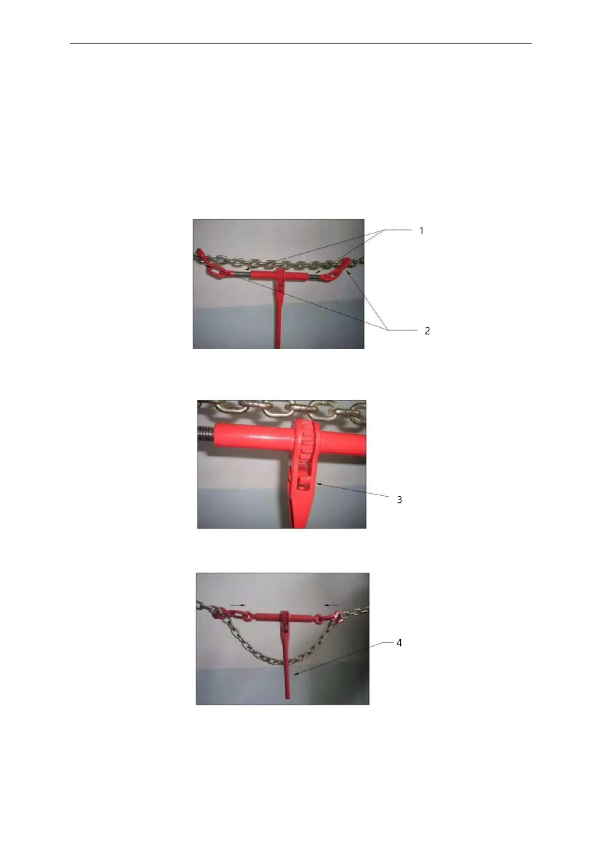 4. A fogantyút elforgatva csavarja be a tüskés rudat a racsnis hengerbe, és húzza meg a láncot.