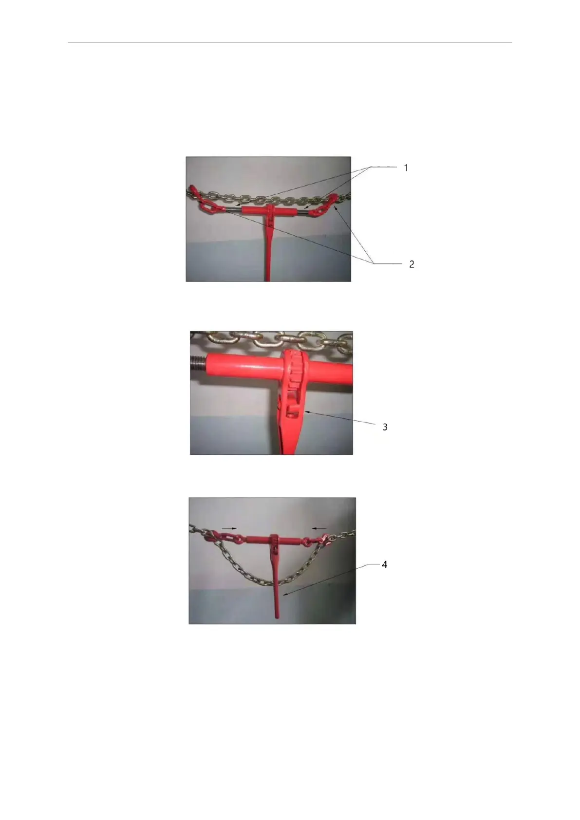 4. Vrid handtaget för att vrida den taggiga stången i spärrcylindern och dra åt kedjan.