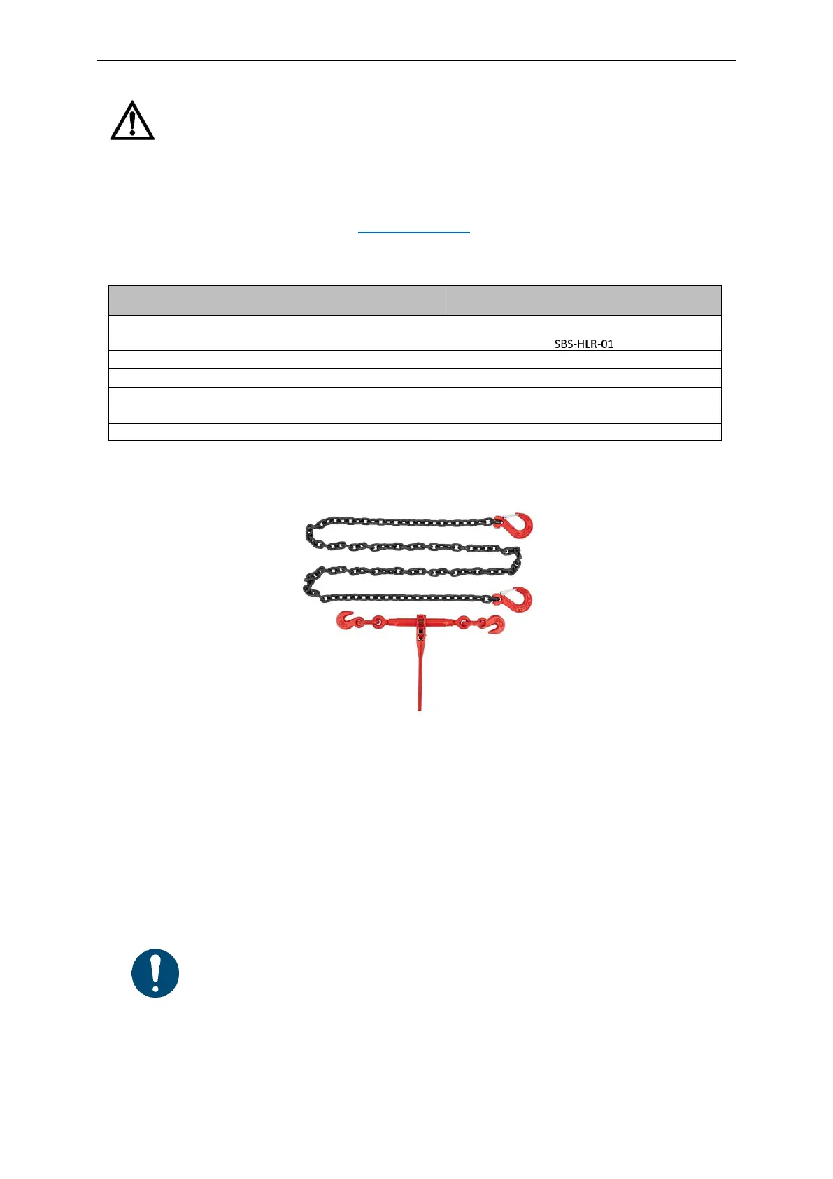 Este produto é usado para aplicar e manter a tensão em cintas, correntes ou cabos de suporte de carga,