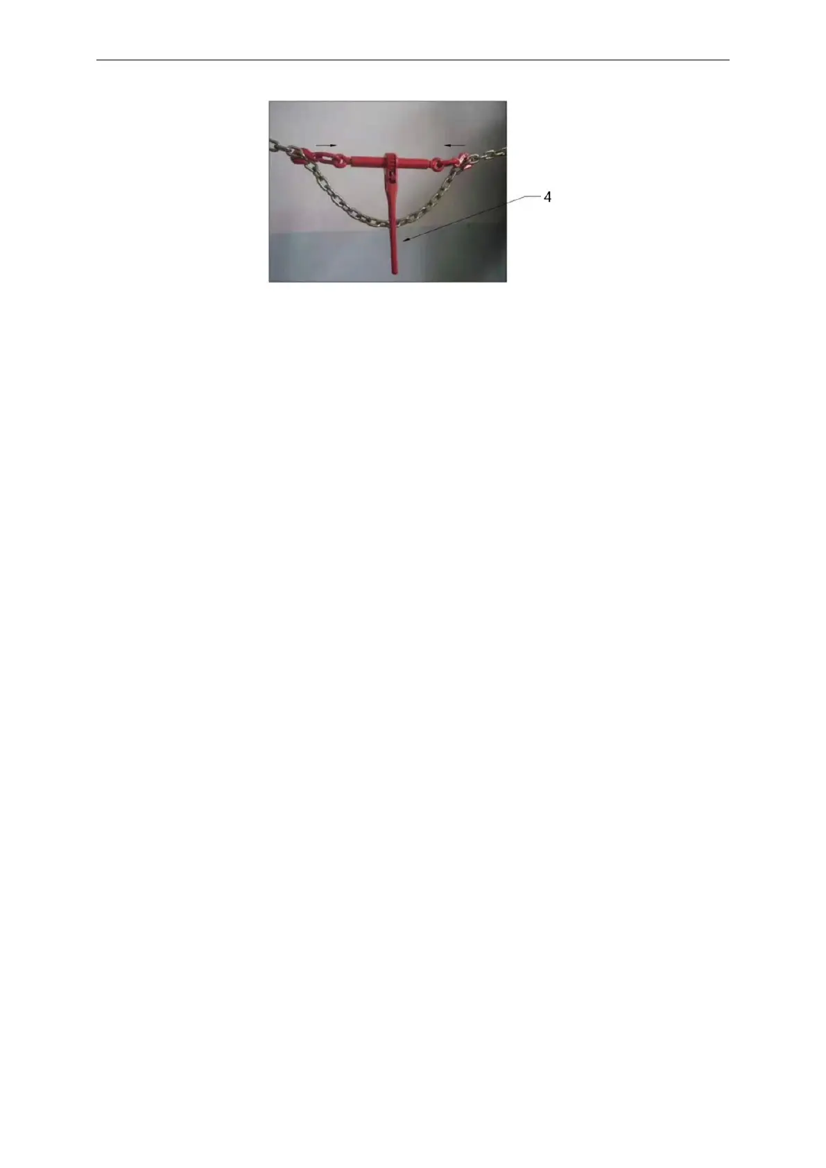 4. Завъртете дръжката, за да завъртите бодливия прът в храповия цилиндър и затегнете веригата.