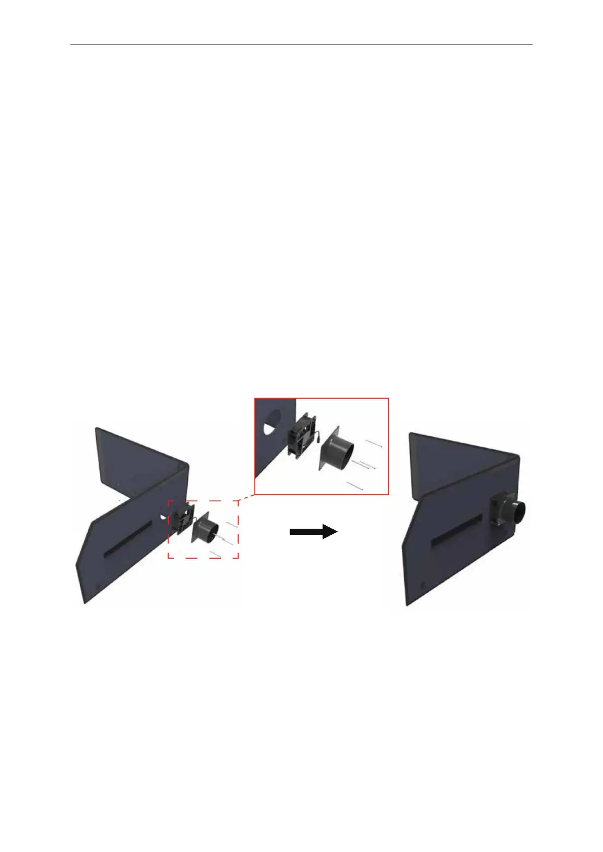 1) First put the M4*55 Phillips screw through the smoke exhaust fitting and then through the fan.