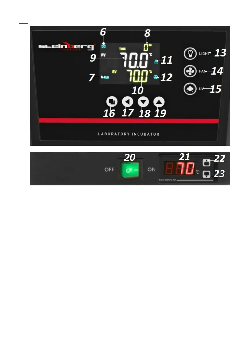 13. botón "light": responsable de la activación/desactivación de la iluminación