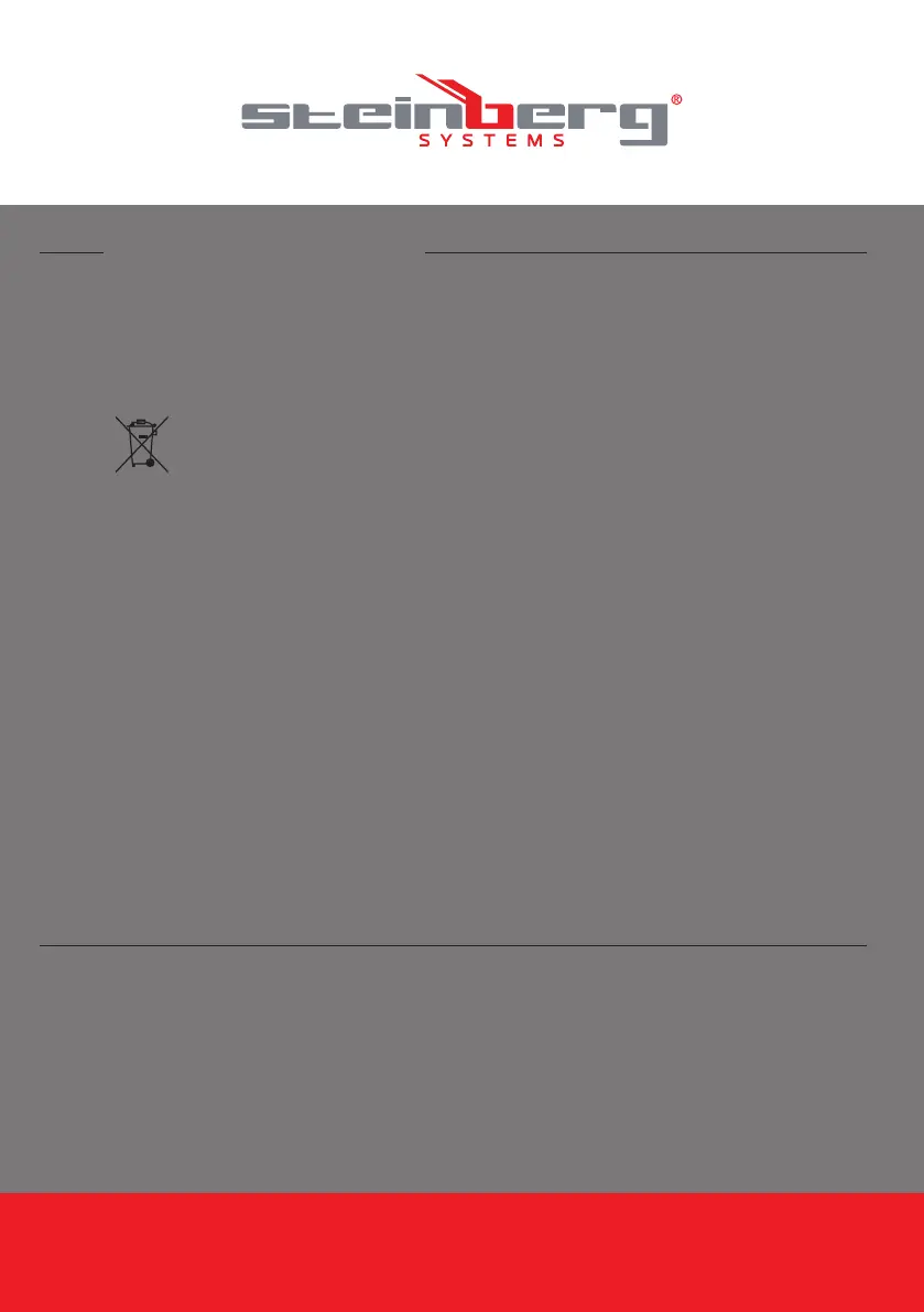 nego punktu odbioru. Nie wolno wyrzucać produktów elektrycznych razem z odpadami gospodarstwa domowego. Zgodnie