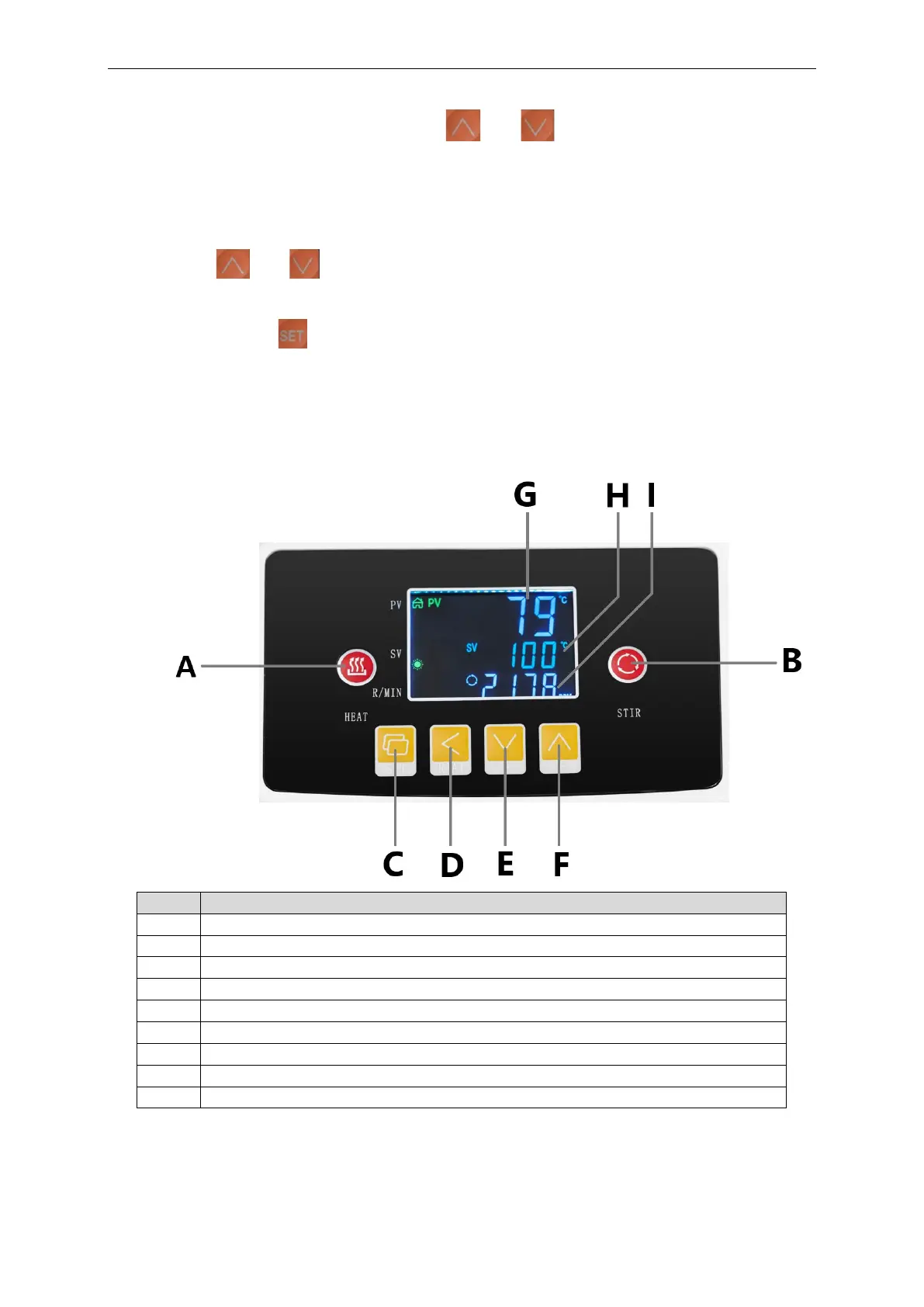 Taste für die Einstellung von Temperatur und Rührgeschwindigkeit
