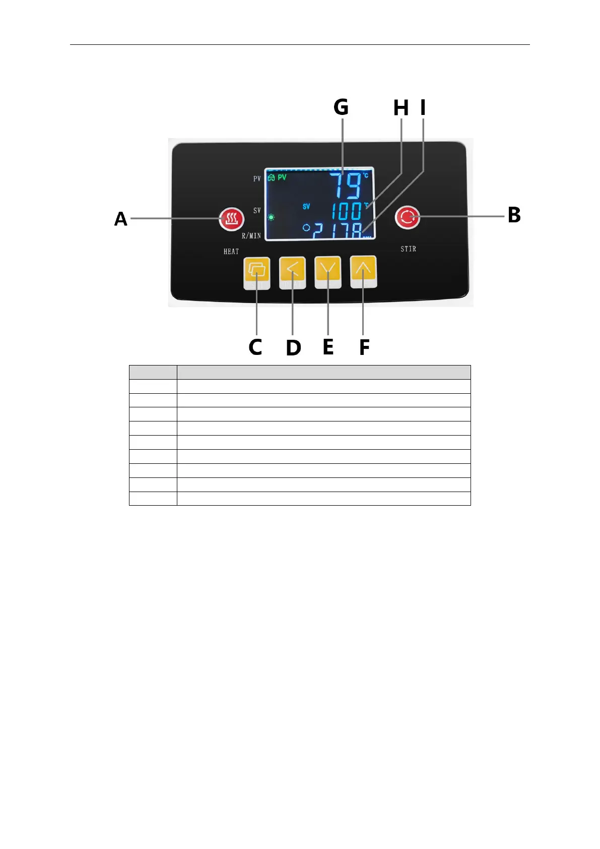 Set temperature and stir speed button