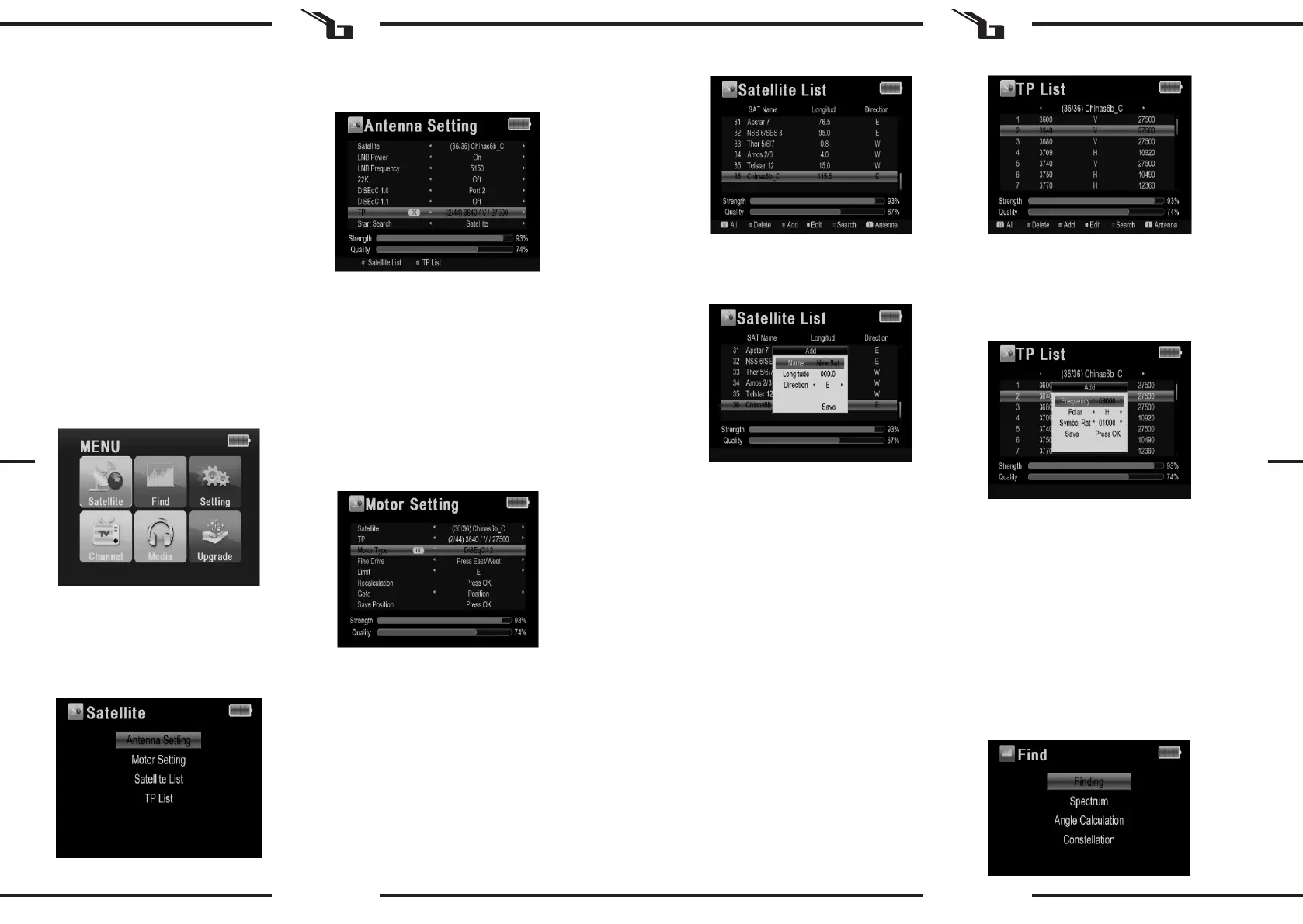 Velg ulike alternativer som “Satellite” / “Find” / “Setting”