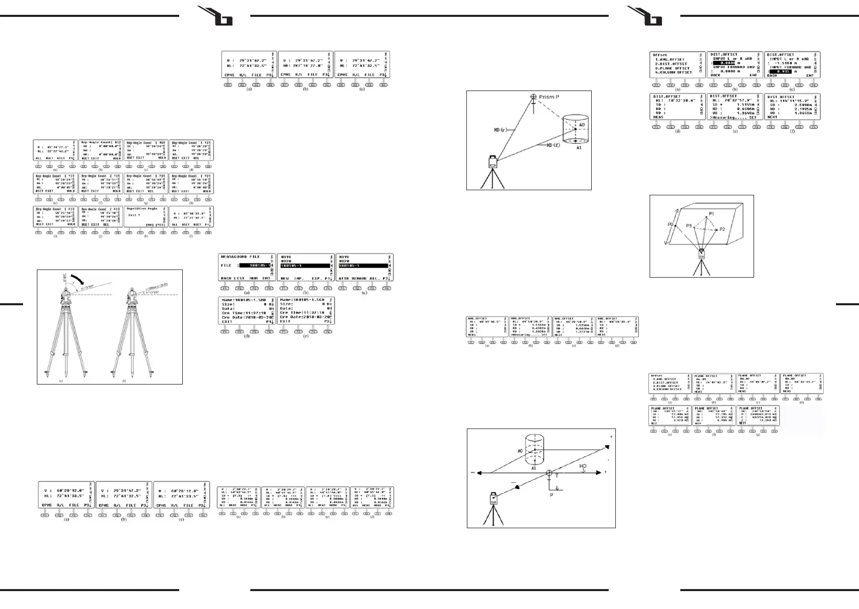 b. Aim at prism P (g. c), press F1 MEAS, turn the