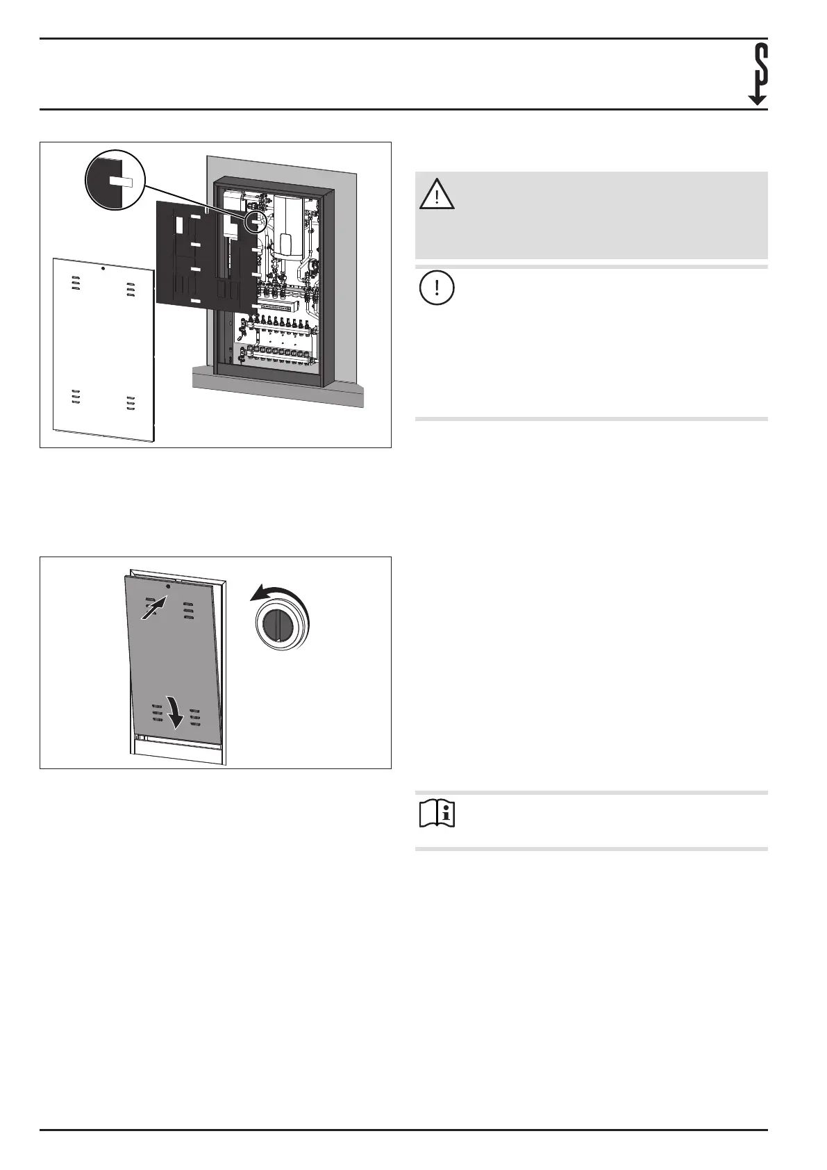f Heben Sie die Gehäusetür schräg nach vorn gekippt in