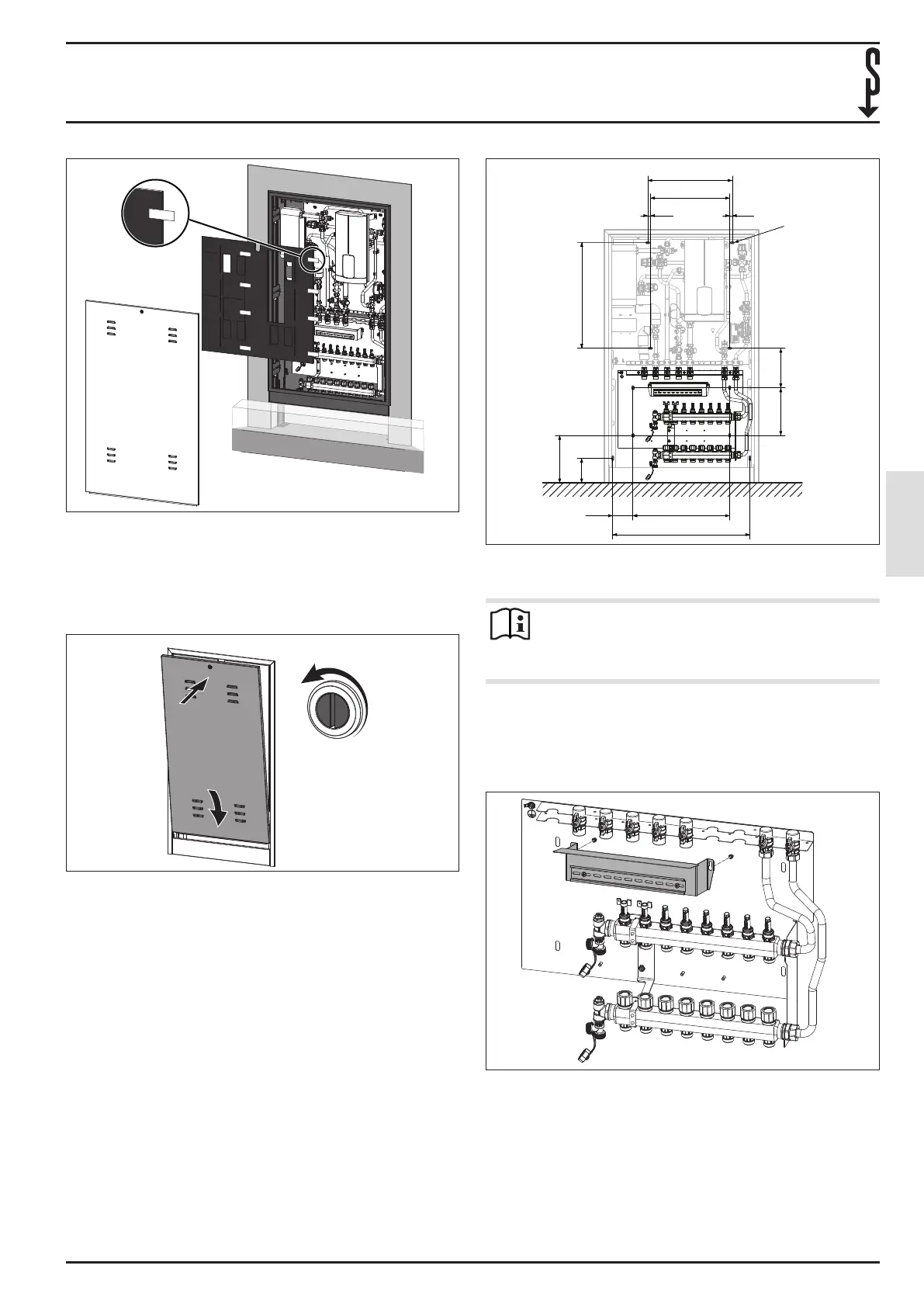 f Boor de gaten voor de verwarmingscircuit-verdeler en de