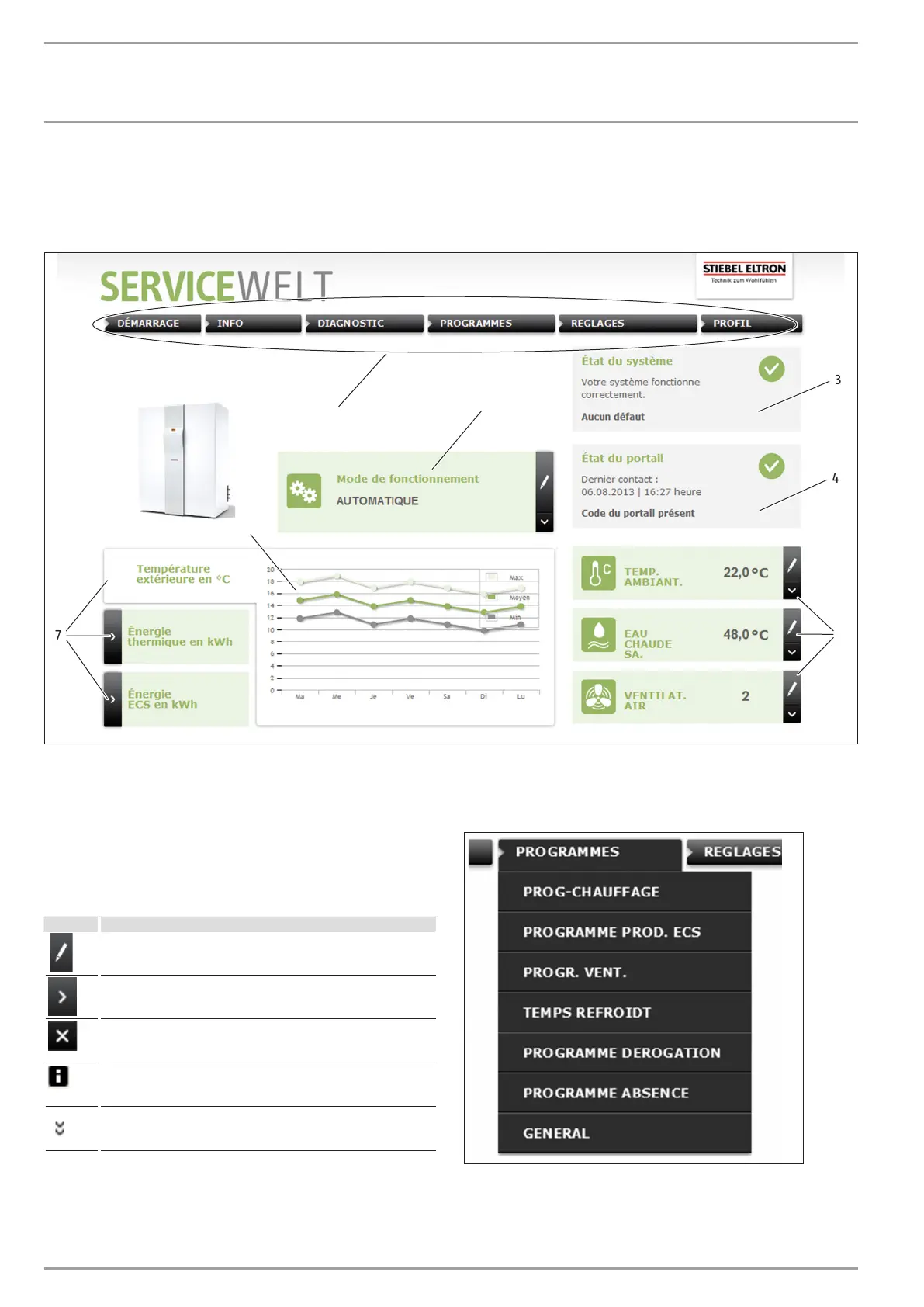 supérieure de SERVICEWELT. Cette zone permet de naviguer dans