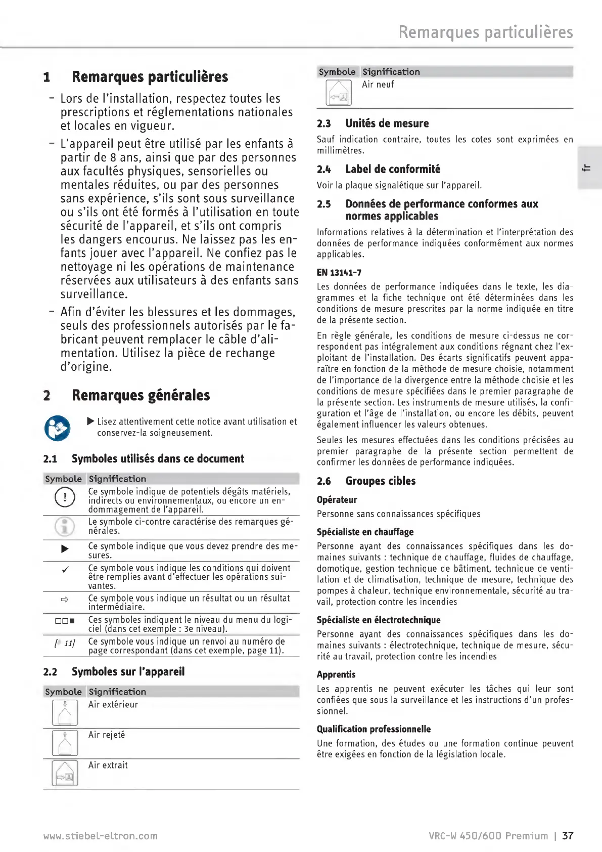 Stiebel Eltron VRC-W 450 E Premium handleiding
