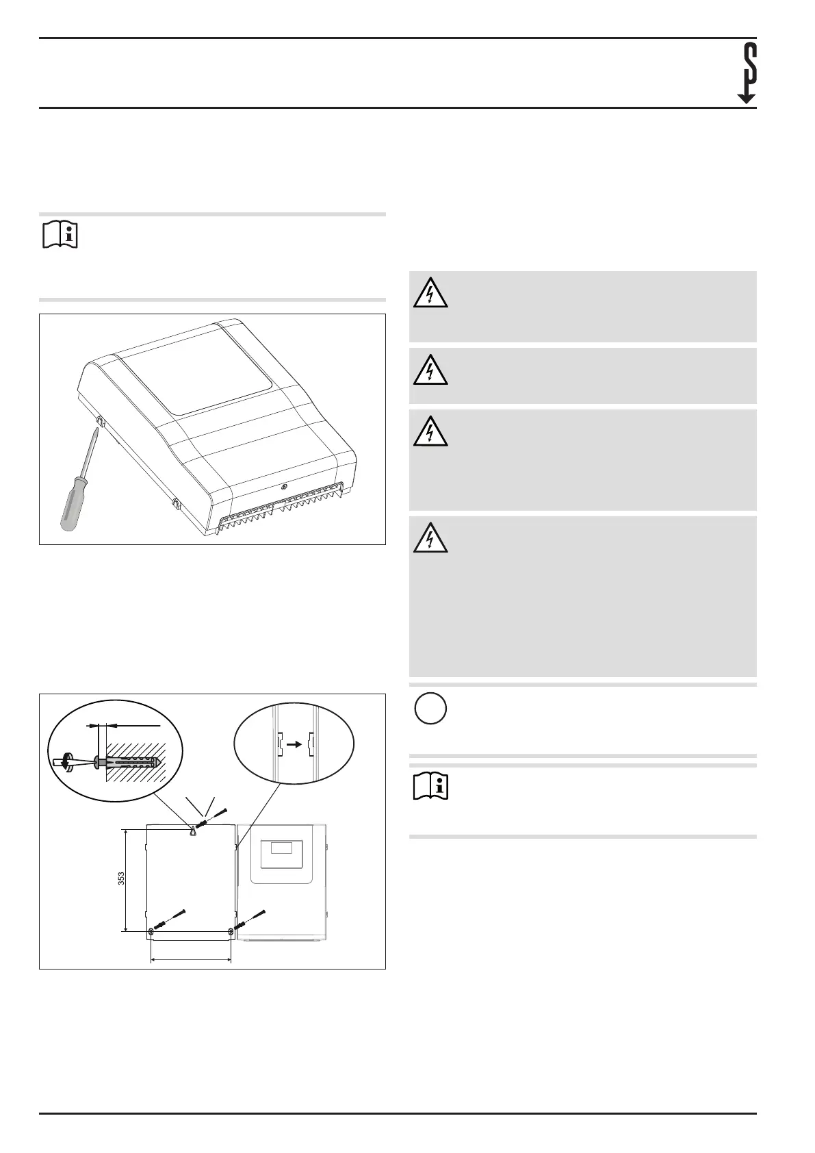 f A burkolat felső rögzítéséhez csavarjon be egy csavart a