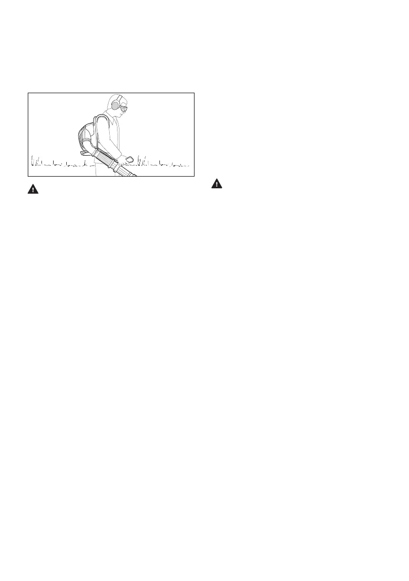 Always carry the blower on your back as a