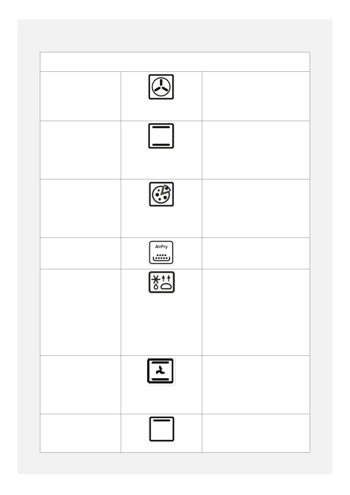MAIN OVEN FUNCTIONS: RECOMMENDED USES