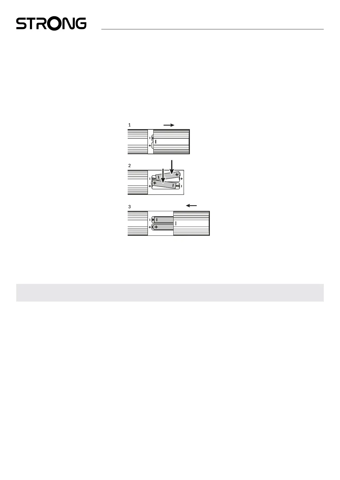 Open het klepje op de afstandsbediening en plaats 2x AAA batterijen in het vak. De juiste positie van het polarisatie symbool van