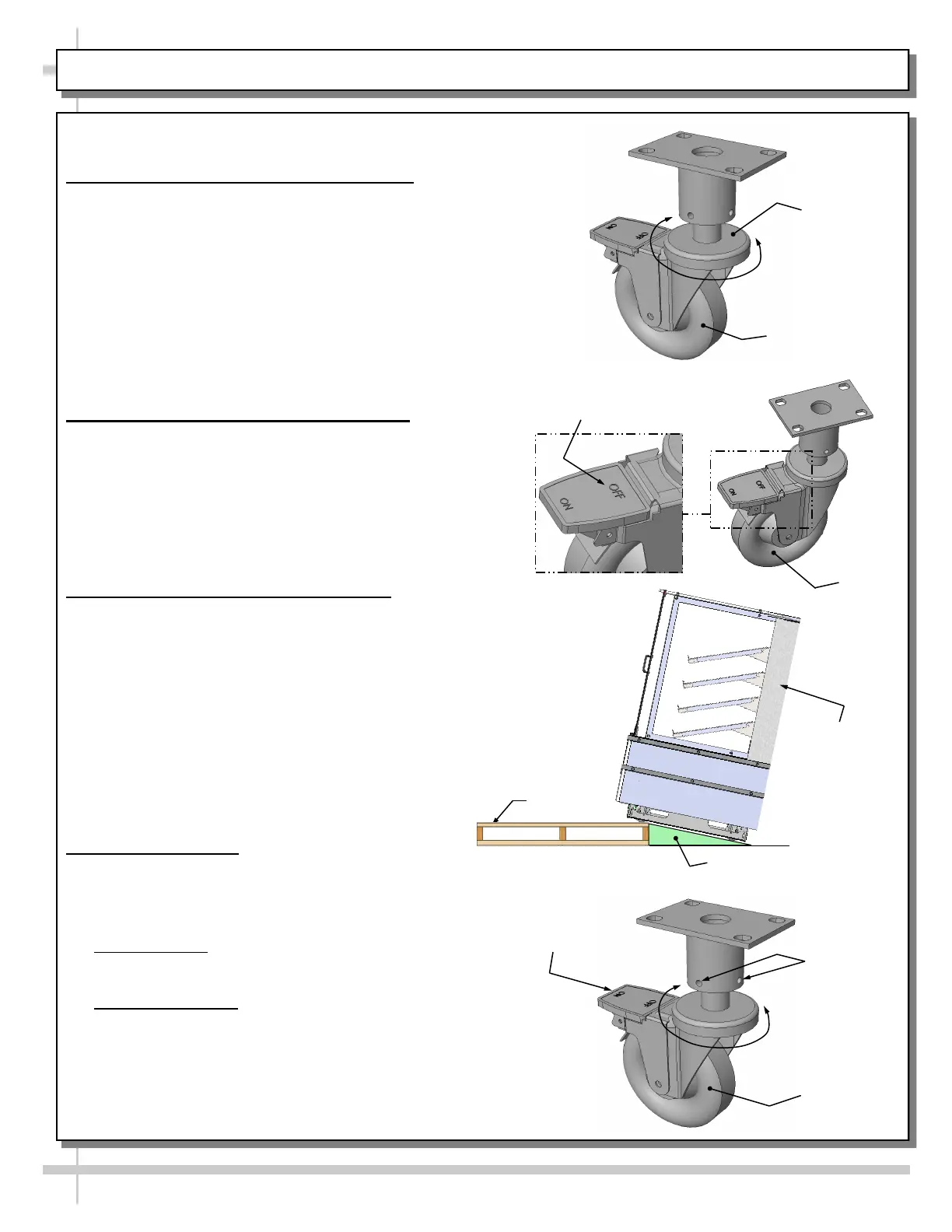 INSTALLATION, CONT’D.: CASTER ADJUSTMENT / LOCK / UNLOCK / CASE REMOVAL FROM SKID