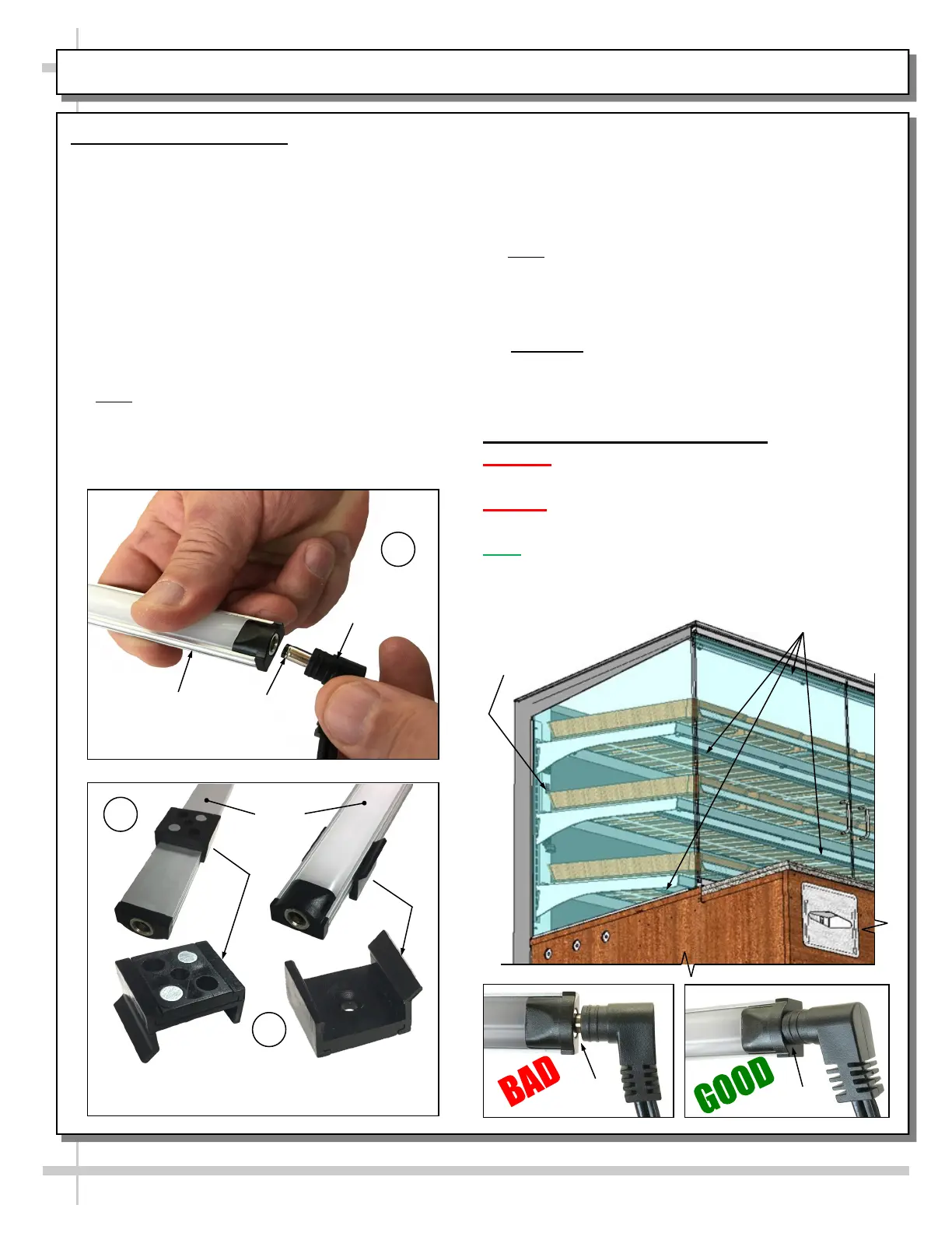 • Reattach LED light assembly to its shelf/header.