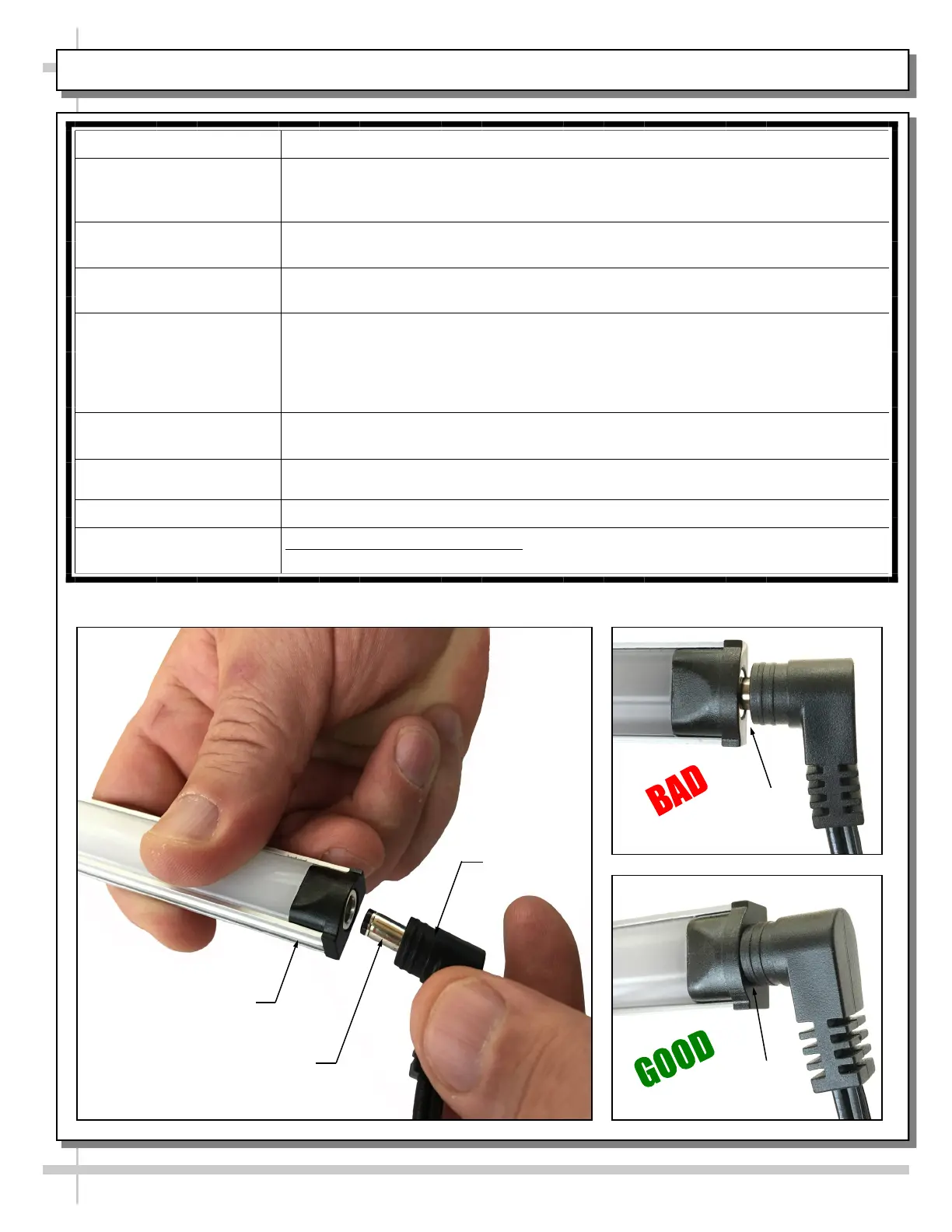 LED Lights: Check plugs and lights for proper connection (illustrated below).
