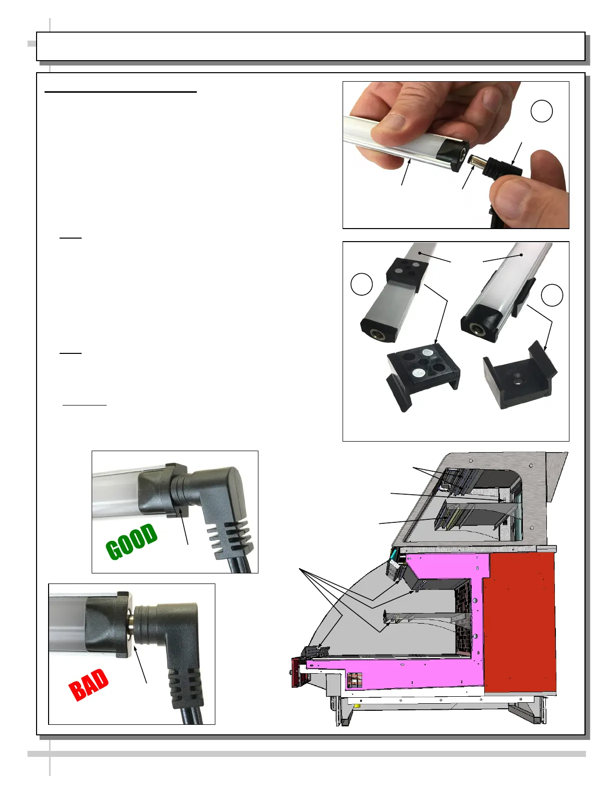 LED LIGHT REMOVAL/REPLACEMENT, PLUG/CORD POSITIONING, PROPER PLUG INSERTION