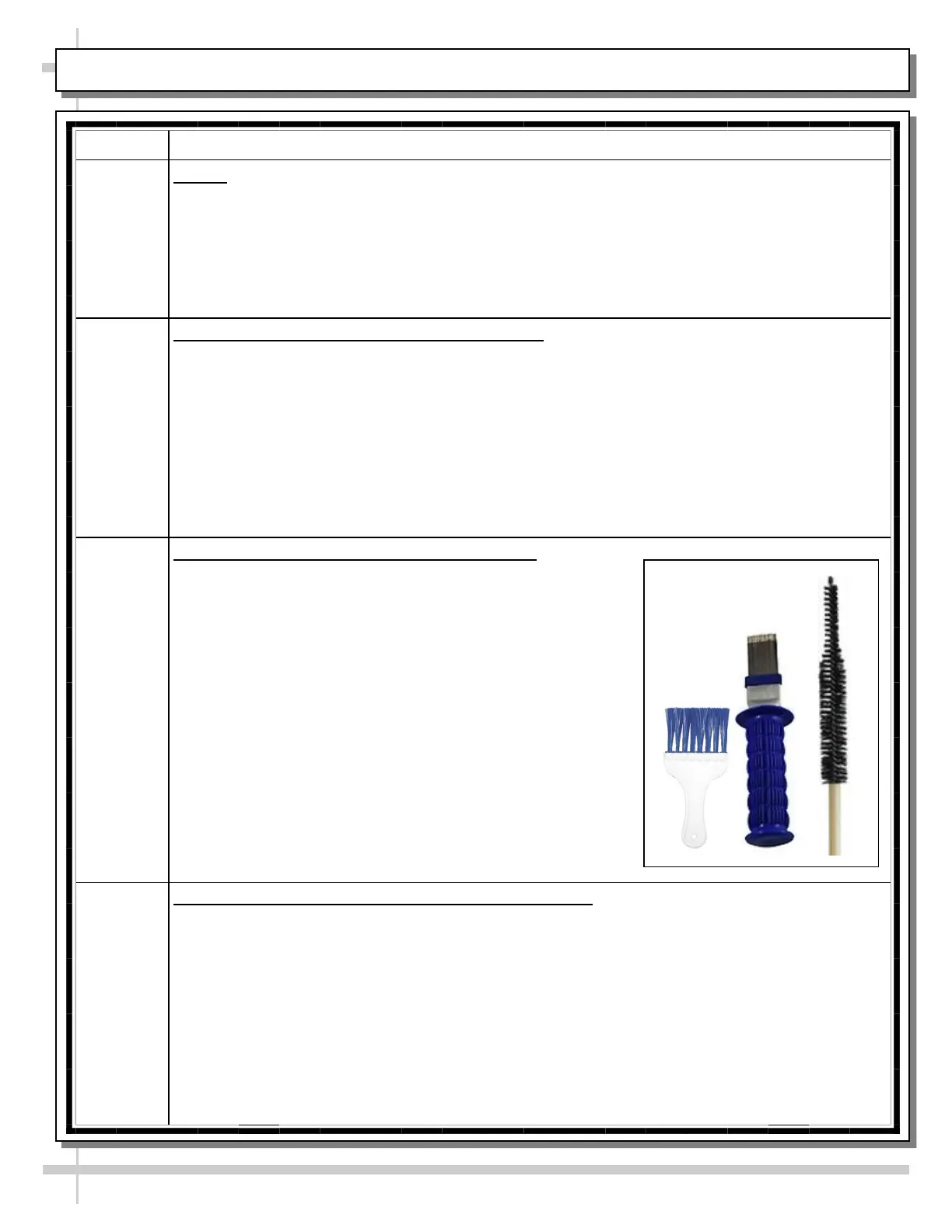 • Condenser coil brush may be used to dislodge dust, dirt