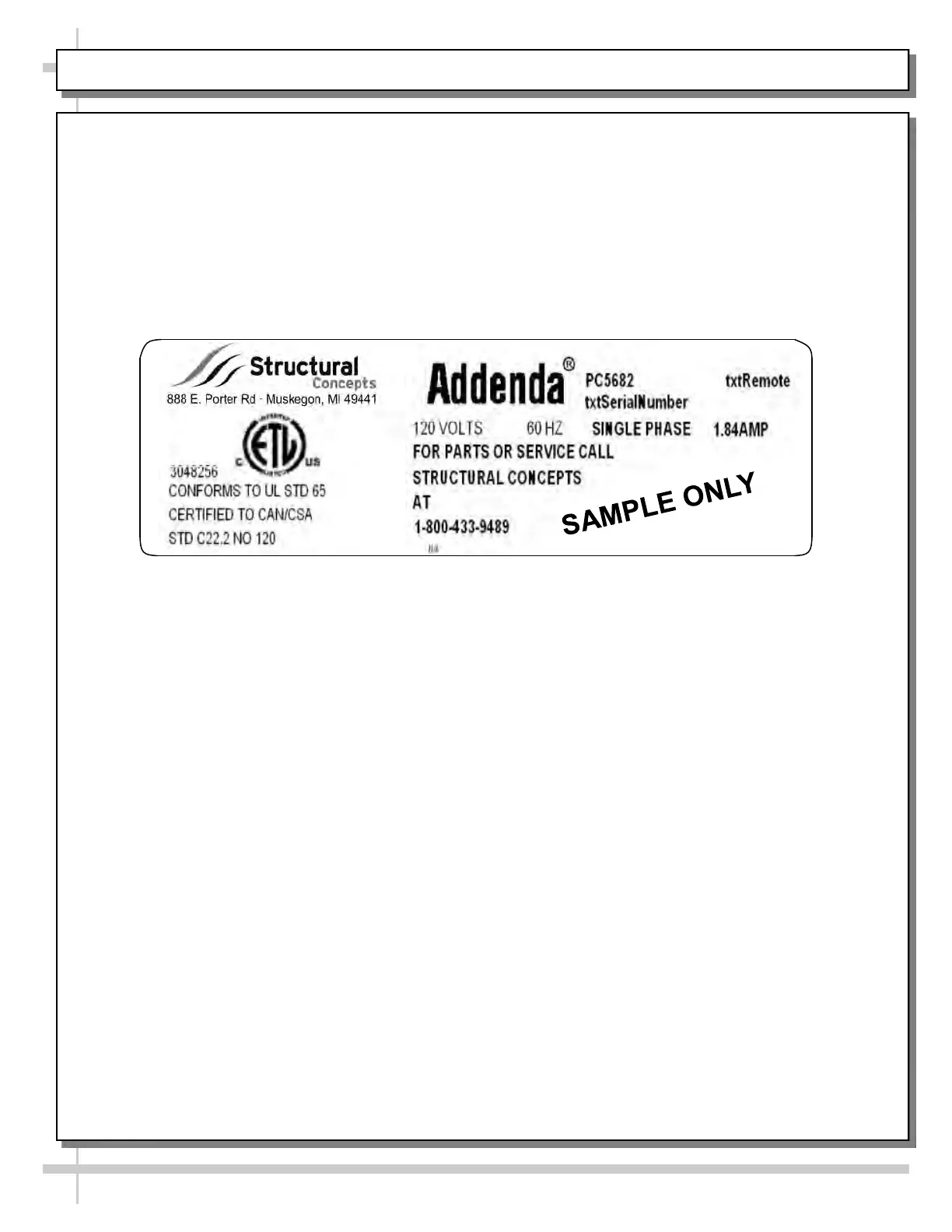 Serial labels contain electrical Information, as well as regulatory standards to which the case